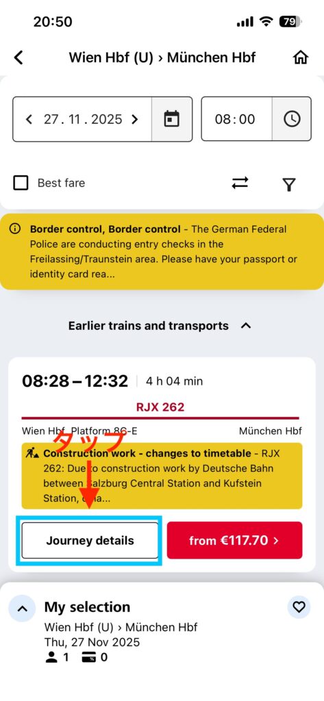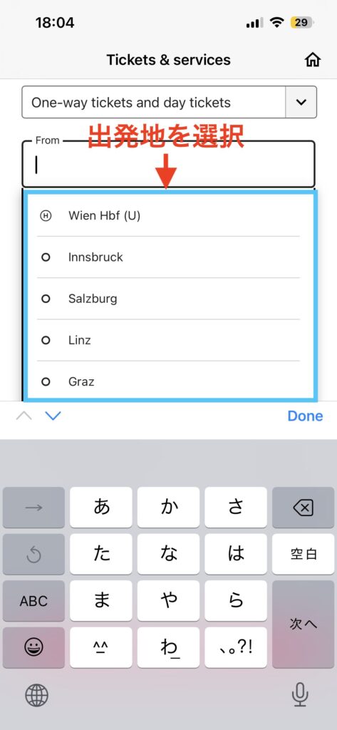 次のセクションでは、実際にÖBB Ticketsアプリからチケットを購入する手順をご紹介します。
