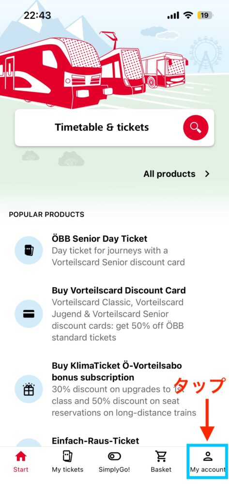ÖBB Ticketsアプリでチケットを購入するには、まずはアカウントを作成しましょう。