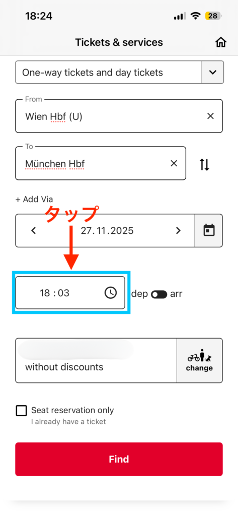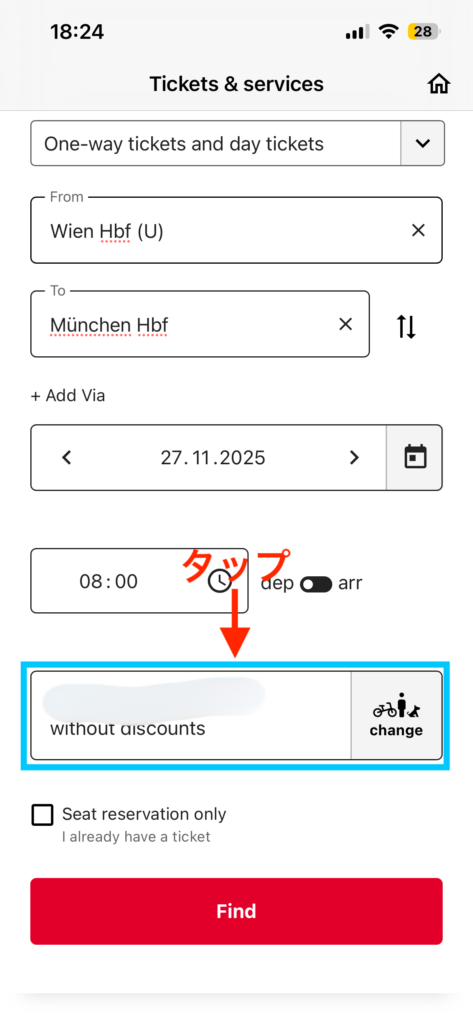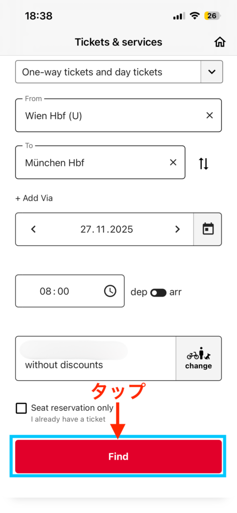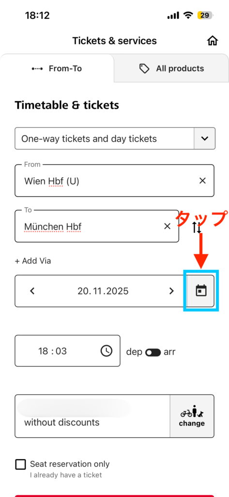 例えば、別のアプリで乗車チケットを持っていて、ÖBB ticketsアプリからは座席のみを予約したい場合など。