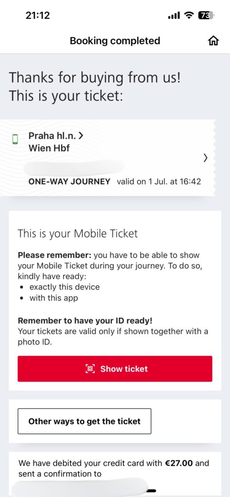 ÖBB Ticketsアプリからのチケット購入手順は以上です。