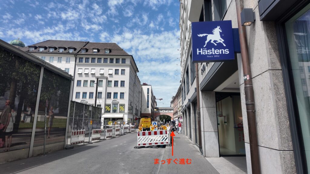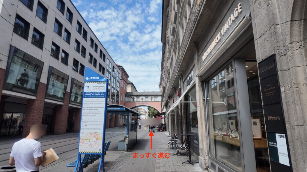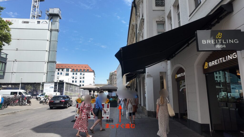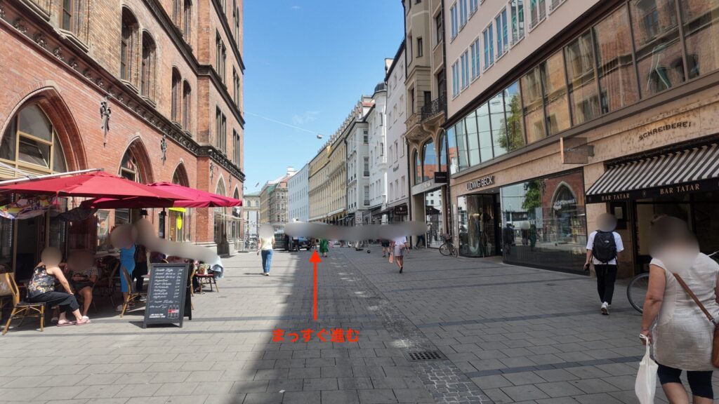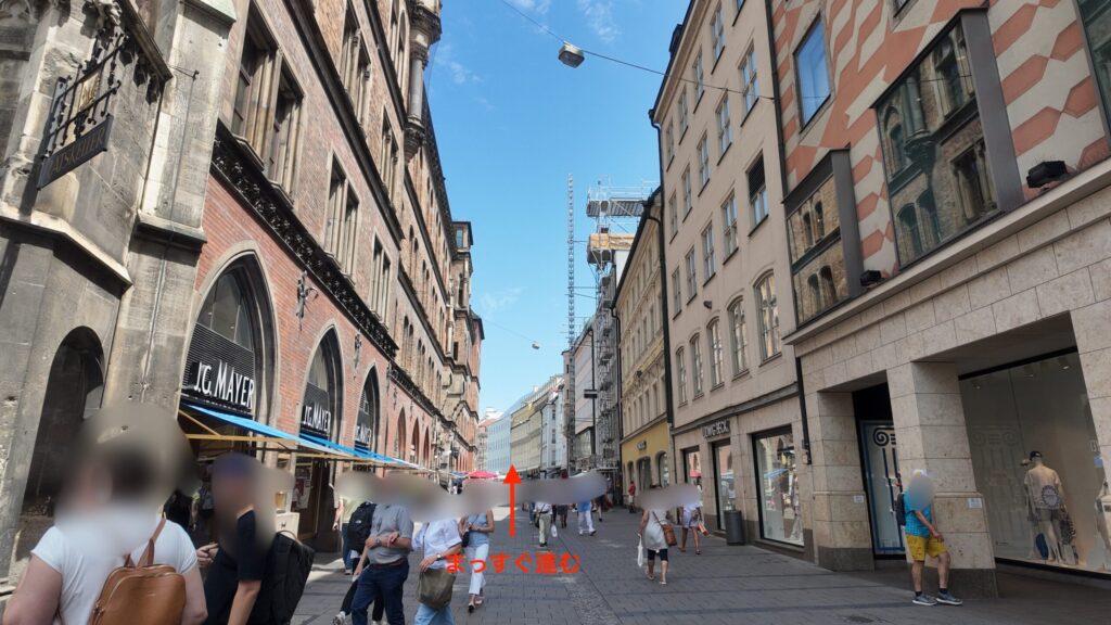 Maffeistraße店を右手に見ながら、さらにまっすぐ進みます。