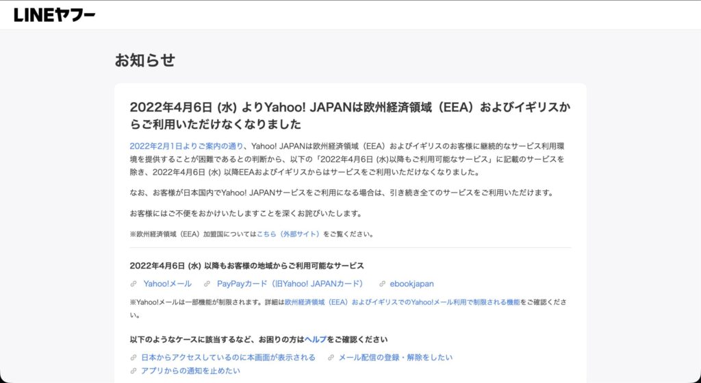 筆者はヨーロッパ旅行中にYahooの記事にアクセスしようとしたところ、以下のような画面が表示されました。
