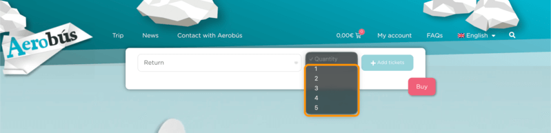 「Quantity」をクリックして必要な枚数を選択します。複数人で旅行する場合は、人数分のチケットをここで指定してください。