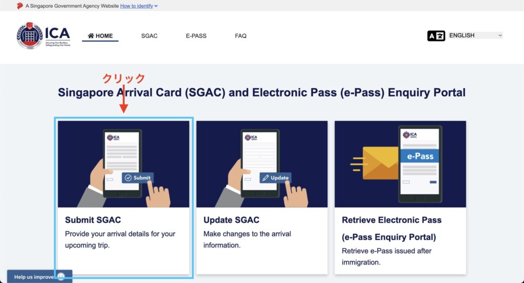 まずは、SG Arrival Cardの申請ページにアクセスします。