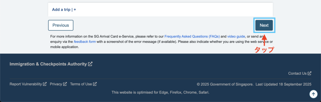 ここでは、SG Arrival Cardの申請方法を、実際の画面に沿ってステップごとに解説します。