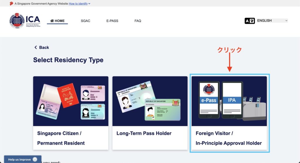 一番右にある「Foreign Visitor / In-Principle Approval Holder」をクリックします。