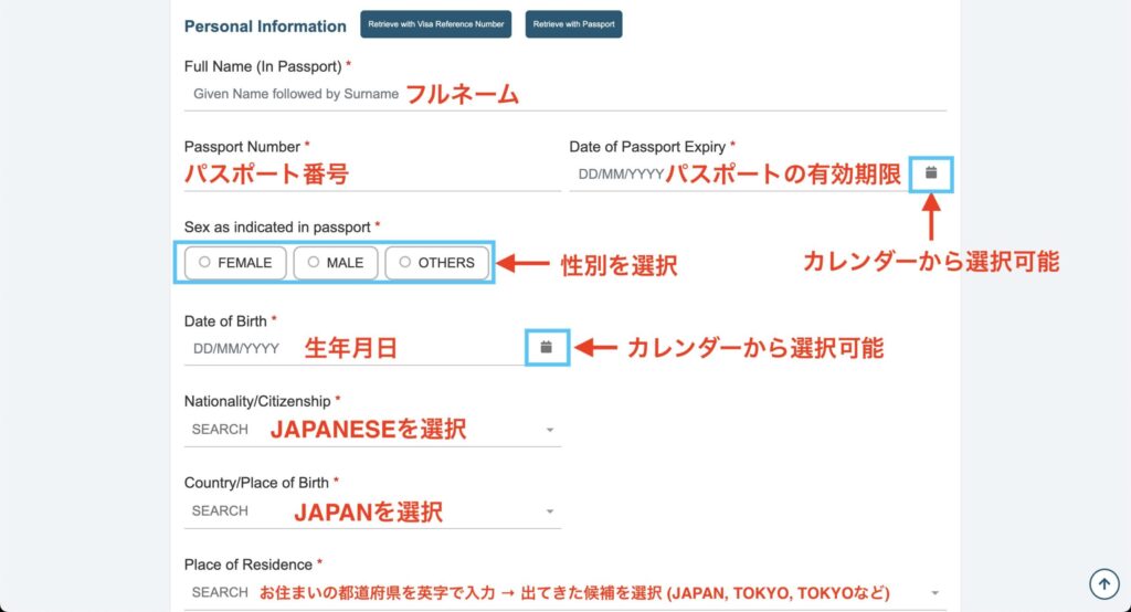 - Date of Passport Expiry:パスポートの有効期限を入力 (カレンダーから選択可能)