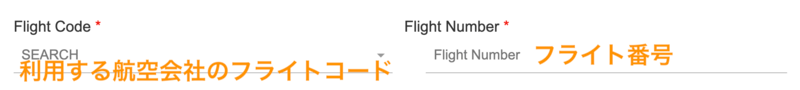 - フライトコード:利用予定の航空会社のコードを選択