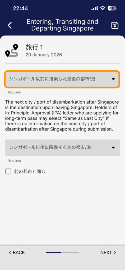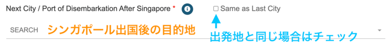 | Last City / Port of Embarkation Before Singapore | どの都市からシンガポールに到着予定かを入力 |