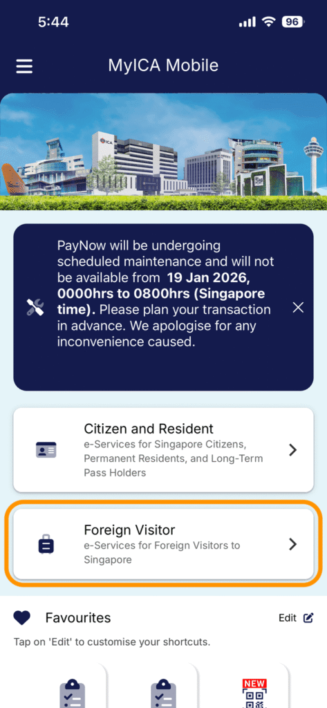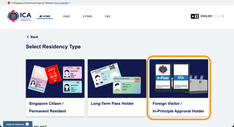 一番右にある「Foreign Visitor / In-Principle Approval Holder」をクリックします。