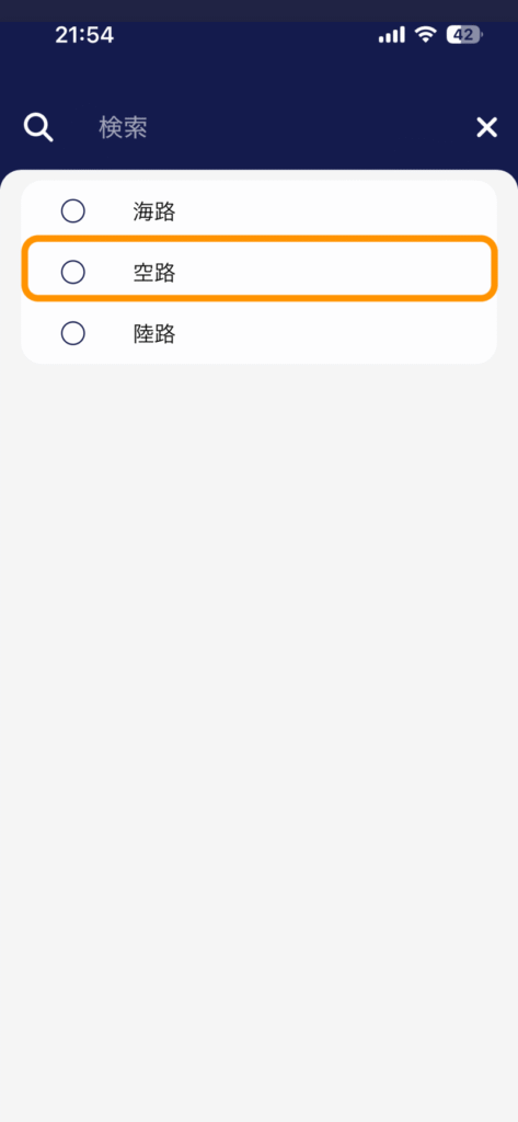 上記で「空路」を選択すると「航空便の種類」という項目が出てきますのでタップします。