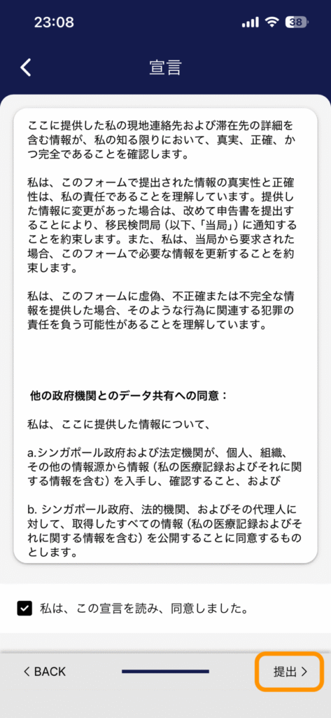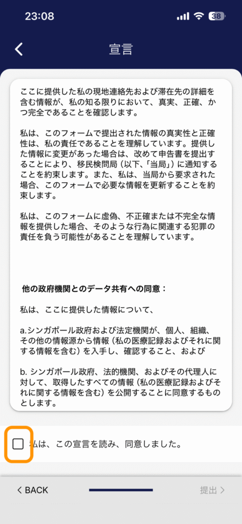 最後に宣言の内容を読んでチェックをつけます。