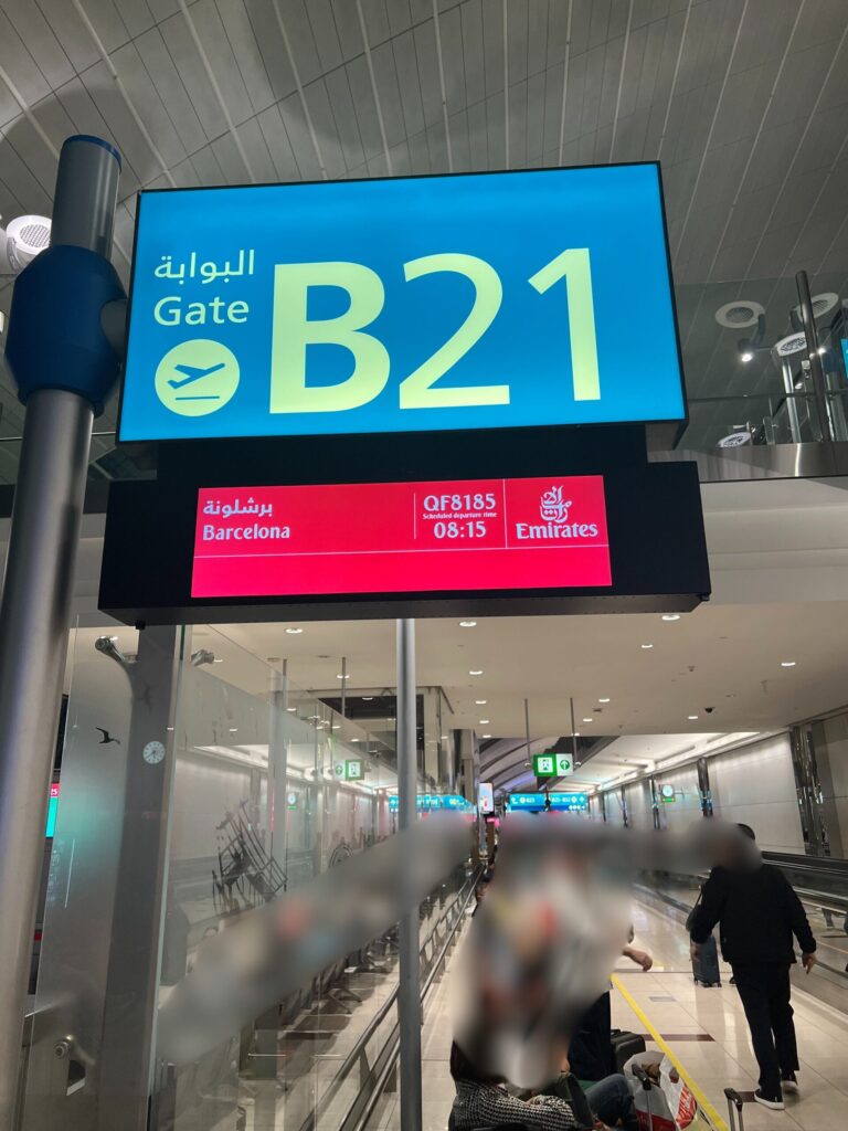 - ドバイ空港〜バルセロナ空港:8:15発・12:50着